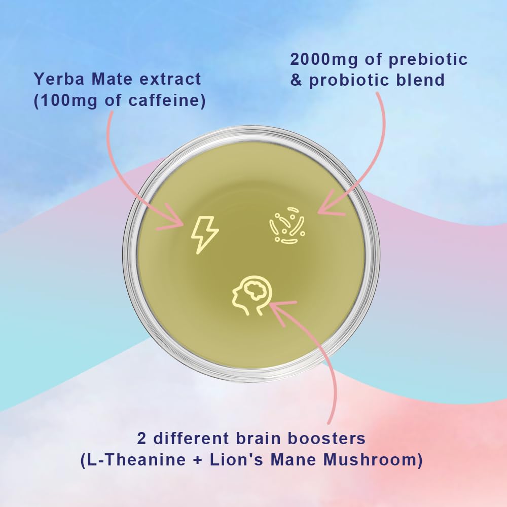 - POWERFUL 3-in-1: Combines Yerba Mate, Nootropics, Prebiotics & Probiotics to support energy, focus, digestion, and gut health in one convenient, great-tasting mix.