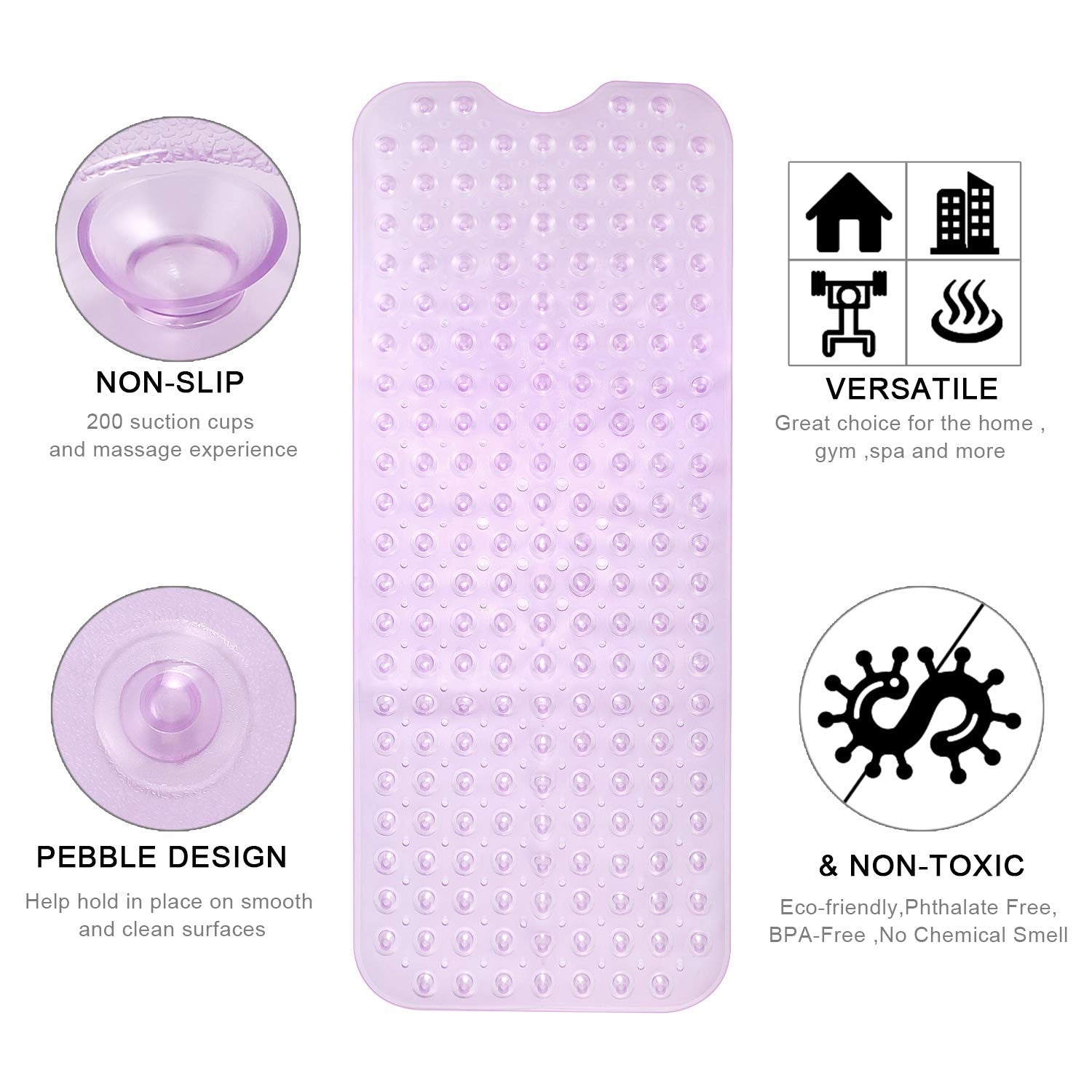 YINENN Bath and Shower Safety Mats 40x16 inch, Non Slip with Suction Cups for Bathroom Stall and Tub Floor, Extra Large and Machine Washable, Drain Holes Keep Bathtub Clean, Purple