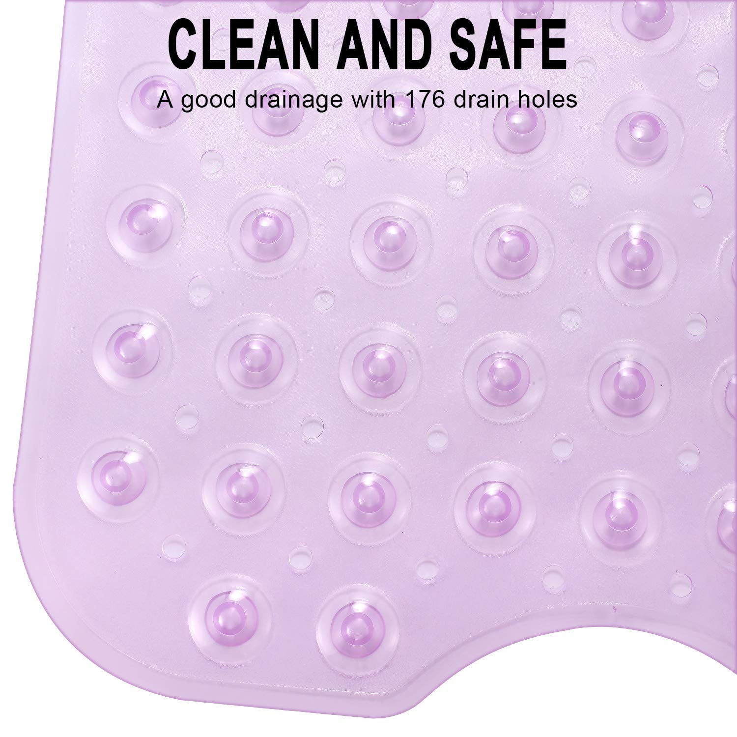 YINENN Bath and Shower Safety Mats 40x16 inch, Non Slip with Suction Cups for Bathroom Stall and Tub Floor, Extra Large and Machine Washable, Drain Holes Keep Bathtub Clean, Purple is backordered and will ship as soon as it is back in stock.