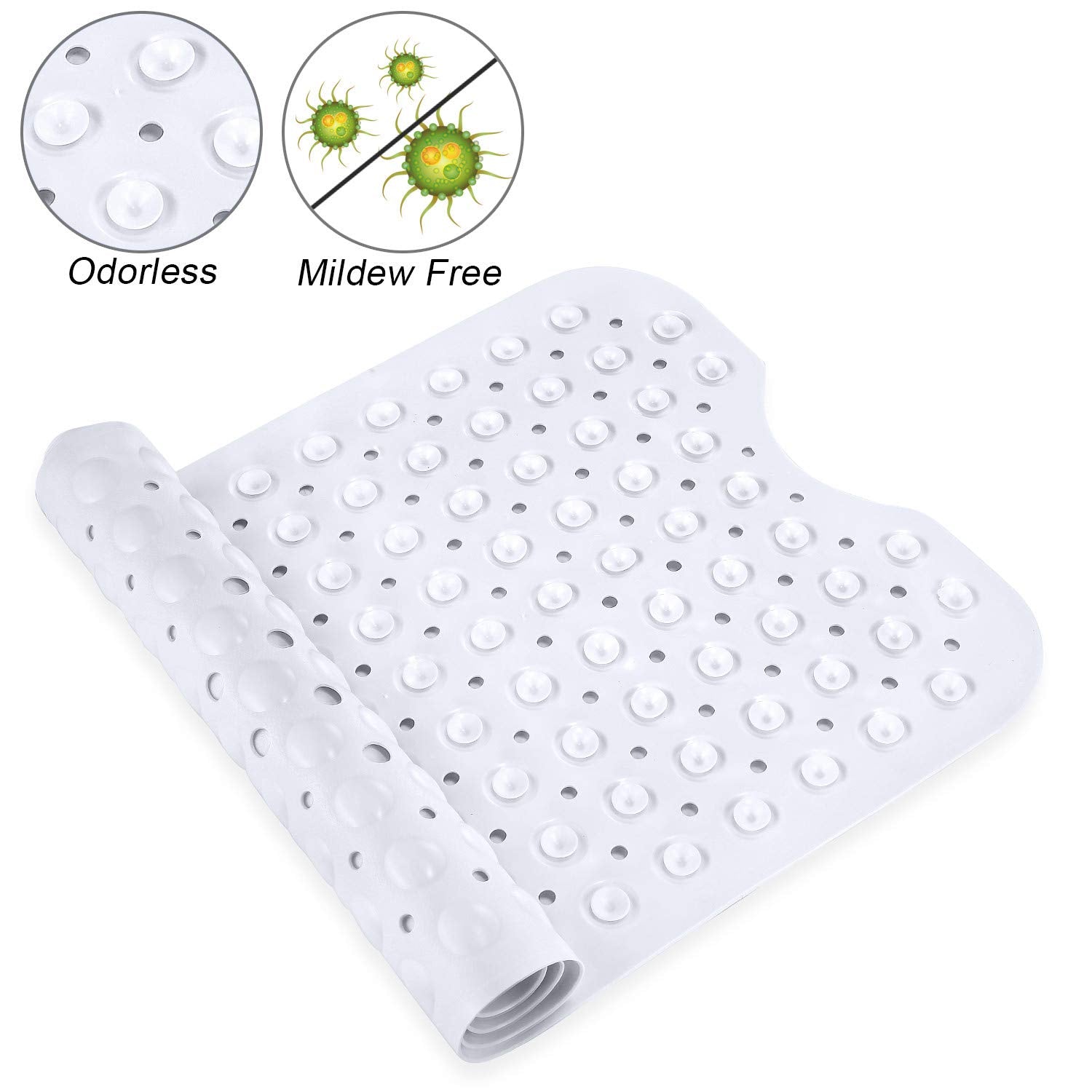 YINENN Bath and Shower Safety Mats 40x16 inch, Non Slip with Suction Cups for Bathroom Stall and Tub Floor, Extra Large and Machine Washable, Drain Holes Keep Bathtub Clean, White is backordered and will ship as soon as it is back in stock.