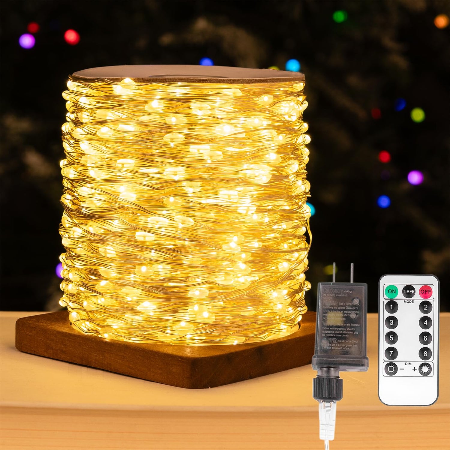 ZELUXDOT Fairy Lights Plug in,200FT 600LEDs Waterproof Led String Lights,8 Modes Remote Twinkle Light for Outdoor Indoor Christmas Wedding Birthday Garden Party Decorations,Silver Wire,Warm White is backordered and will ship as soon as it is back in stock.