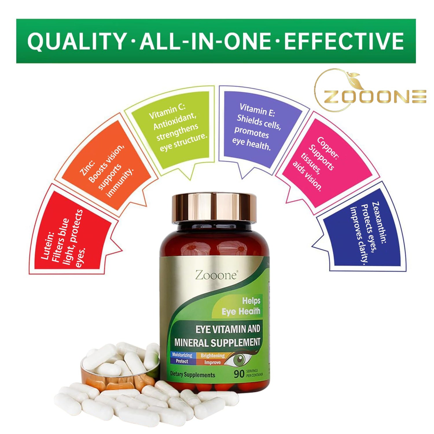 - | Eye Health Essentials |: Zooone Eye Vitamin and Mineral Supplement delivers potent antioxidants, including Lutein and Zeaxanthin, which work synergistically to protect against harmful blue light, support healthy eye function, and enhance long-term visual performance. This comprehensive formula targets the essential nutrients required to maintain optimal vision at all stages of life.