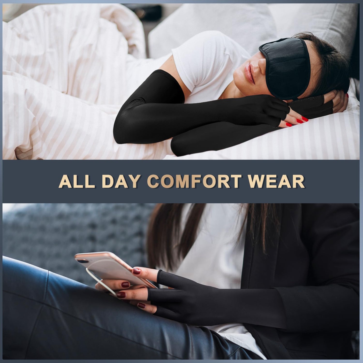 - π¦πππ‘ππππππ‘π§ πππ©ππ‘π§πππ: Unlike other carpal tunnel compression gloves, Zuscot arm compression gloves are designed with extra-long cuffs to cover your wrists, forearms, and elbows, providing continuous relief and support. Sleeve length will reach 3-4cm above the elbow, not covering the entire arm. We intentionally tightened the fabric on the wrists and forearms to address the issue of insufficient pressure in these areas. The super stretchy fabric ensures easy wear.